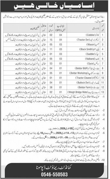 Pakistan Army Remount Depot Mona Jobs 2026 – BPS Civilian Vacancies (Cobbler, Tractor Driver, Mason, Blacksmith, Saddler, Nalband, Syce, Beldar, Tractor Cleaner, Bullock Driver, Weigh Bridge Mate)