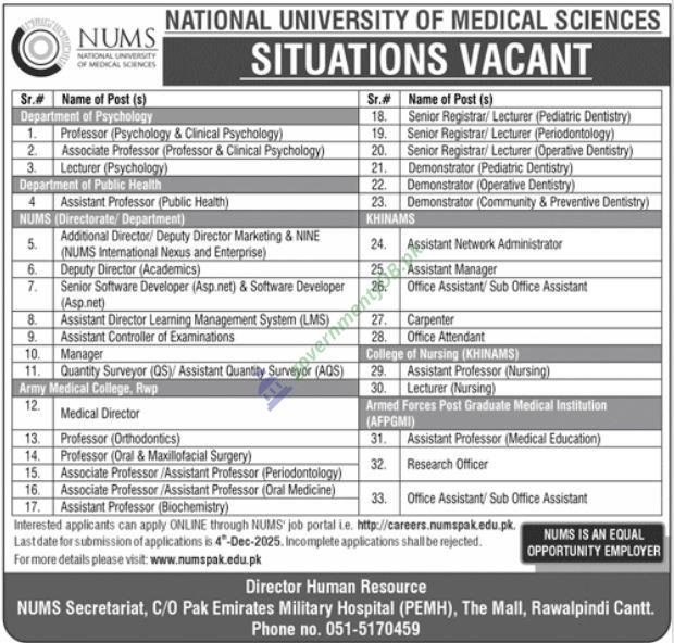 National University of Medical Sciences NUMS Job Advertisement