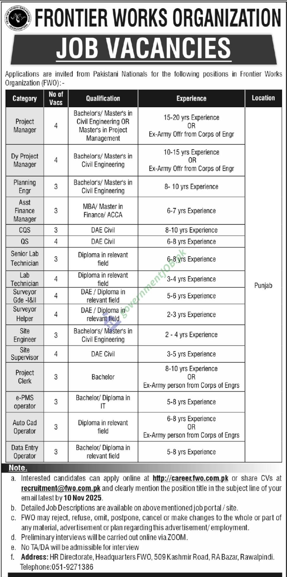 ๐Ÿ“ HR Directorate, Headquarters FWO, 509 Kashmir Road, RA Bazaar, Rawalpindi