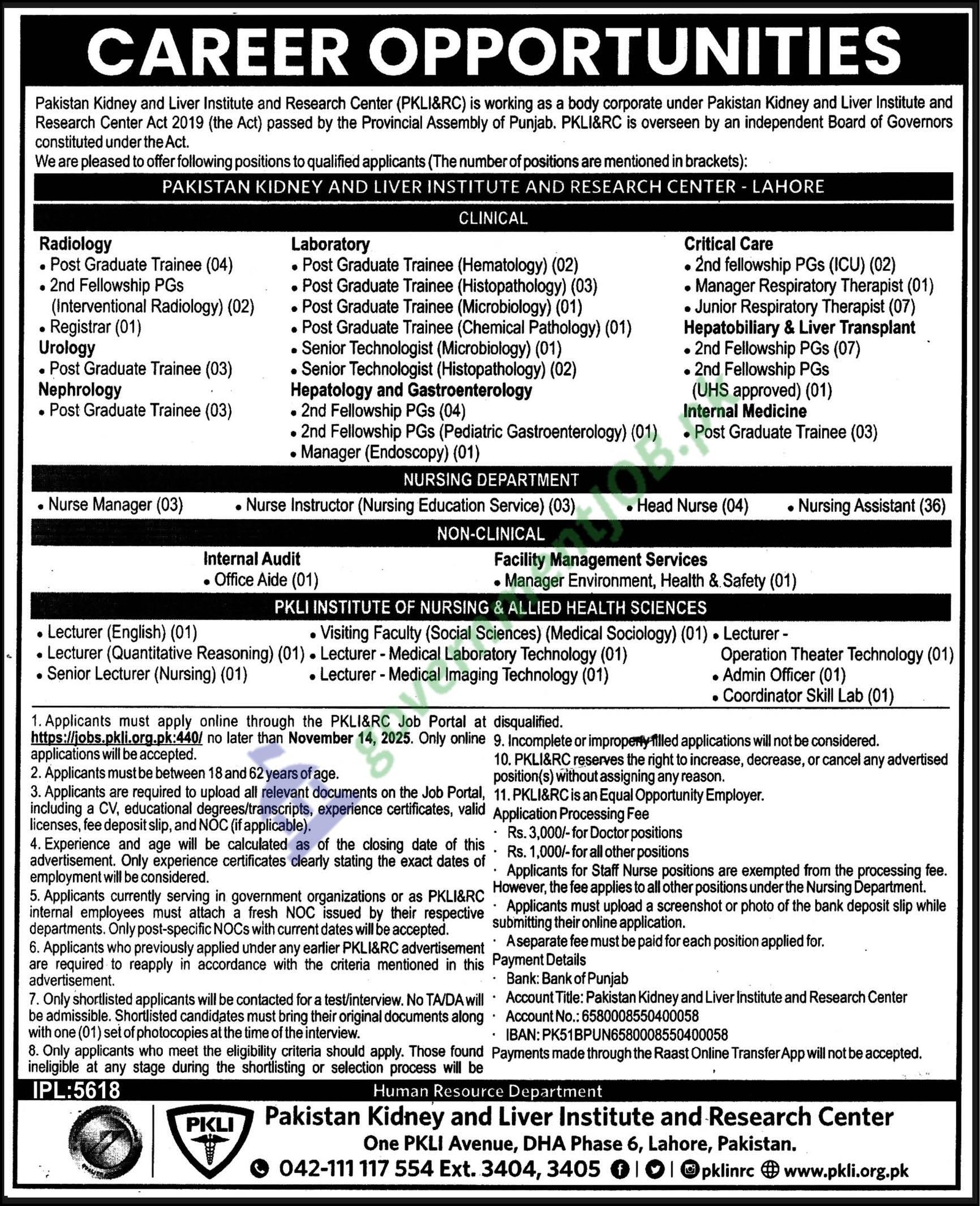 PKLI, a company of Pakistan, has announced a job opening for Lecturer (English) in Lahore. This is a Punjab Government position in the pharmaceutical sector. All eligible applicants are advised to apply before November 14, 2025. Only those candidates who are shortlisted during the application process will be contacted and called for an interview. Please carefully review the official job advertisement by PKLI for detailed information on eligibility, experience, and required documentation before applying.