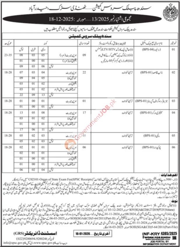 SPSC, a company of Pakistan, has announced a job opening for Naib Qasid in Hyderabad. This is a Sindh Government position in the public service sector. All eligible applicants are advised to apply before January 16, 2026. Only those candidates who are shortlisted during the application process will be contacted and called for an interview. Please carefully review the official job advertisement by SPSC for detailed information on eligibility, experience, and required documentation before applying.