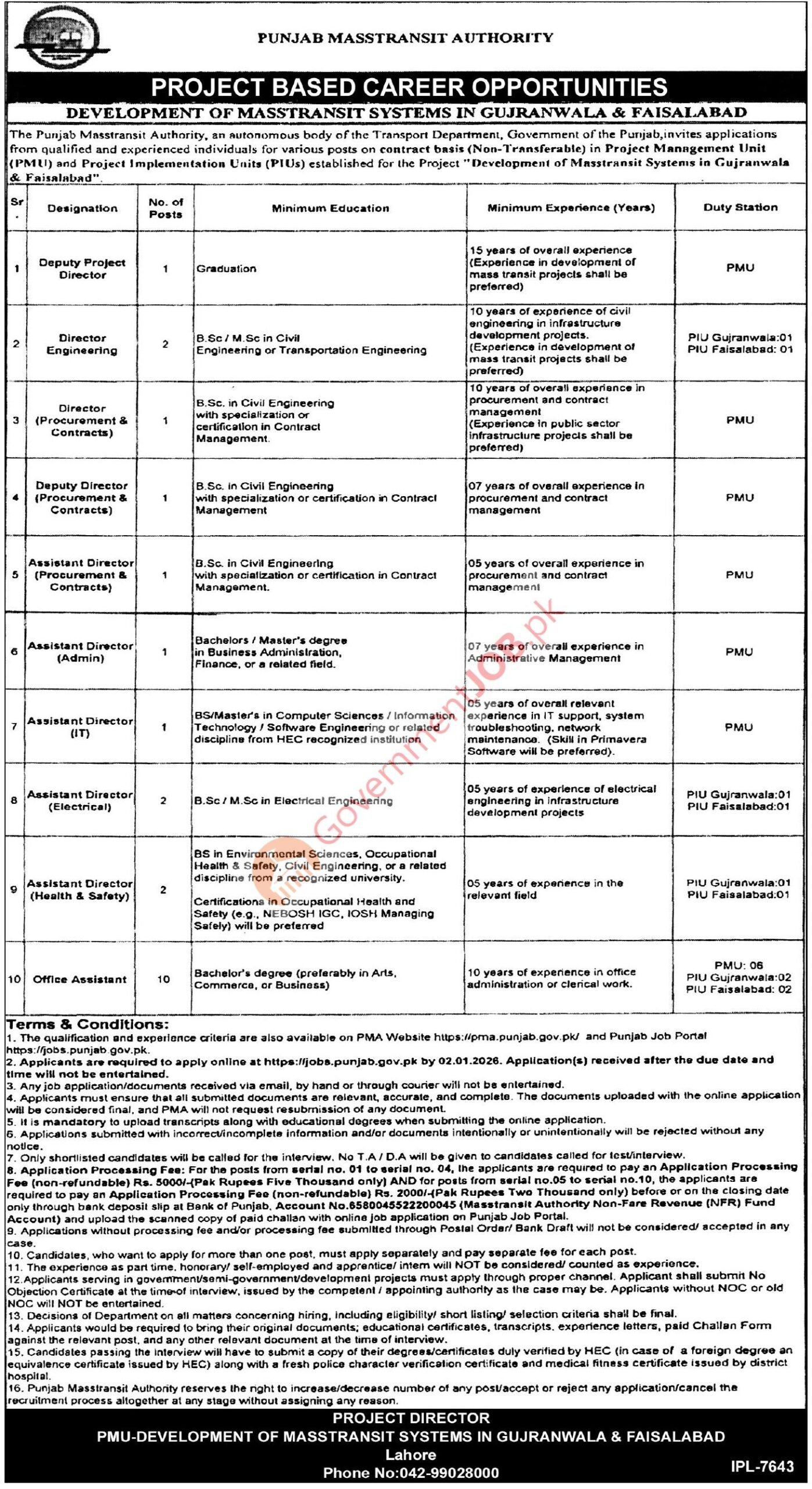 Punjab Mass Transit Authority, a company of Pakistan, has announced a job opening for Office Assistant in Lahore. This is a Punjab Government position in the management sector. All eligible applicants are advised to apply before January 2, 2026. Only those candidates who are shortlisted during the application process will be contacted and called for an interview. Please carefully review the official job advertisement by Punjab Mass Transit Authority for detailed information on eligibility, experience, and required documentation before applying.