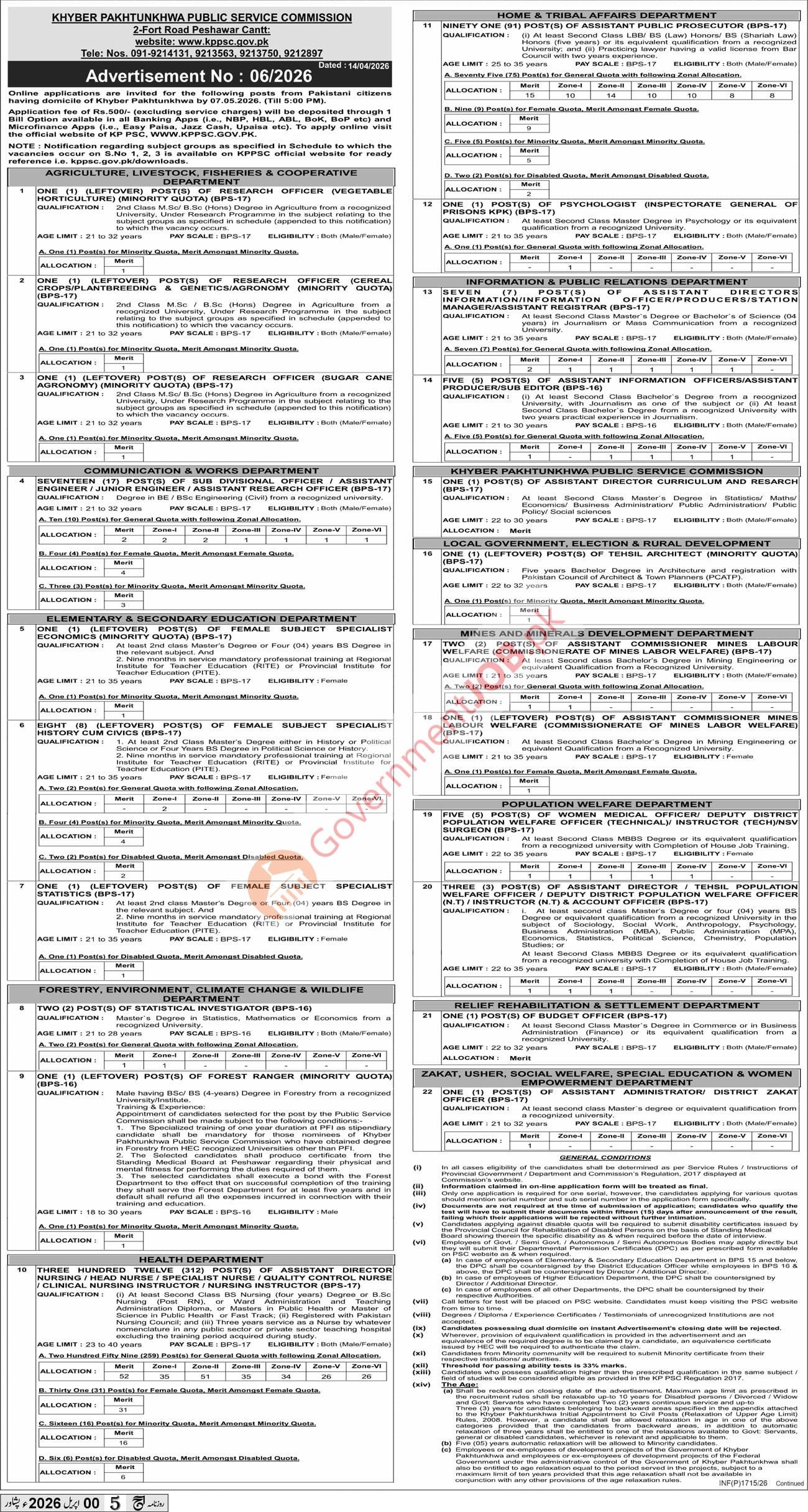KPPSC (Khyber Pakhtunkhwa Public Service Commission) Job Advertisement